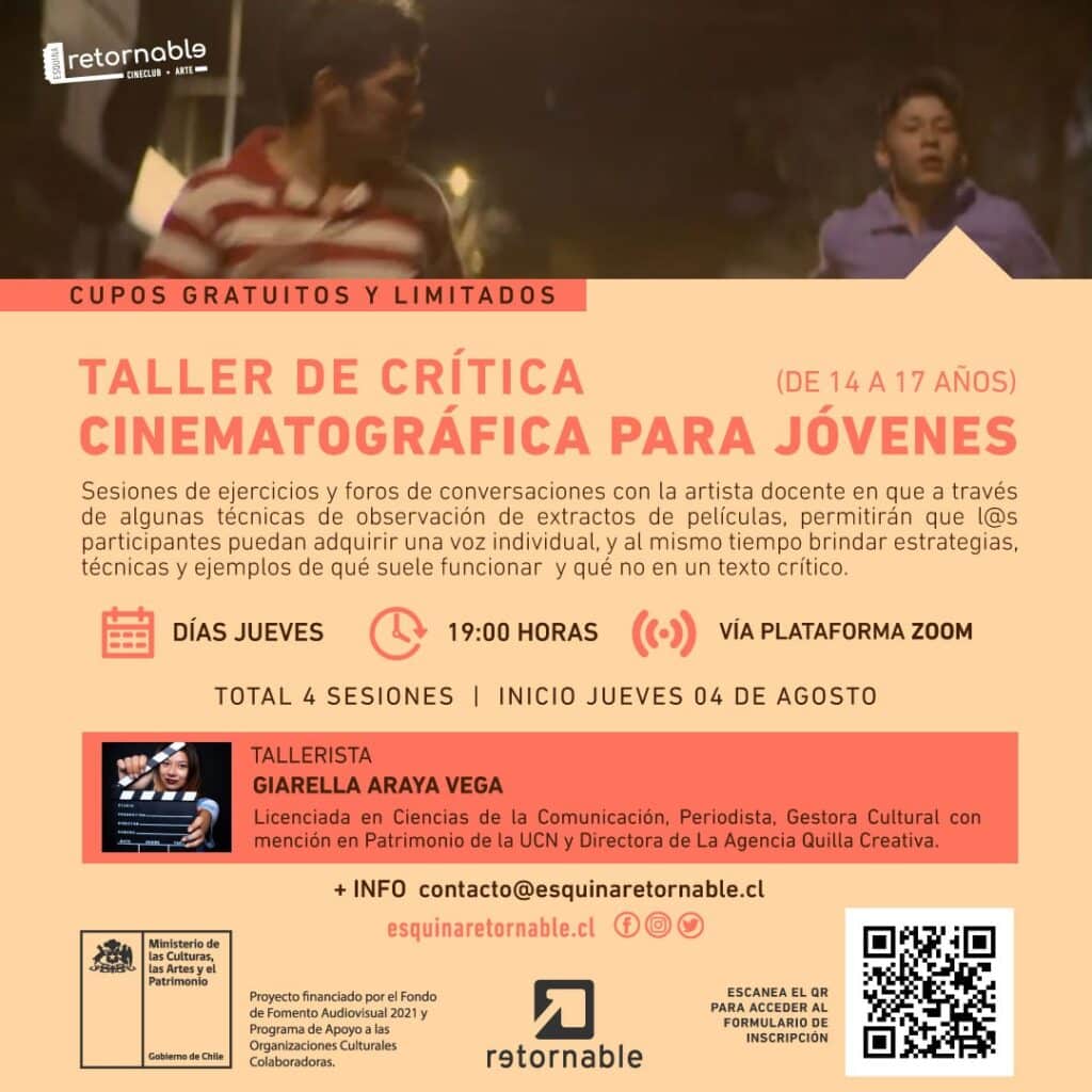 Una excelente noticia para los y las jóvenes amantes del cine: Se abrieron las inscripciones para ser partícipes del taller de Crítica Cinematográfica organizado por Esquina Retornable CineClub.