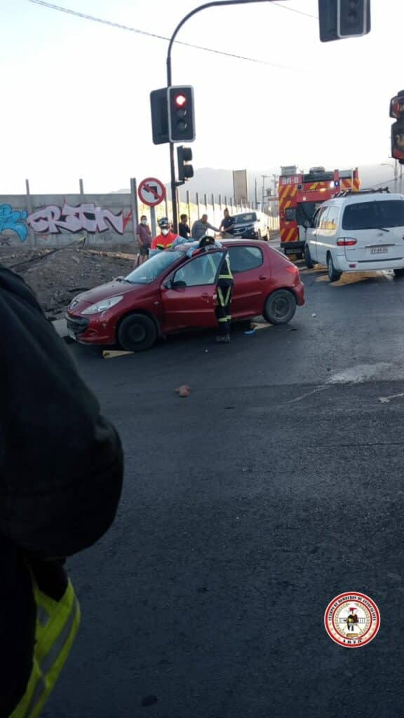 El primer accidente ocurrió en la intersección de Avenida Pérez Zujovic y Las Palmeras, alrededor de las 07:22 horas, donde la Central de Alarmas de Bomberos de Antofagasta despachó a sus unidades BR-8 y BX-7.