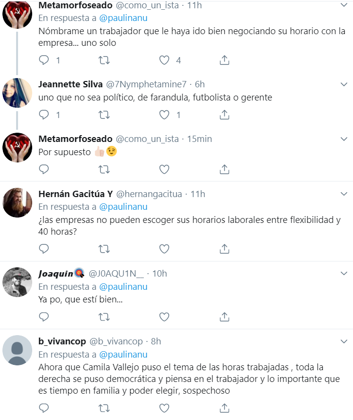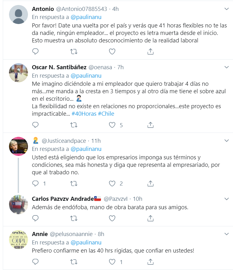 La abogada publicó un tuit en donde aseguraba que el texto propuesto por el Ejecutivo permitiría que los trabajadores elijan las horas en su jornada laboral, lo cual ha sido expresado por diversos personajes de la derecha por los medios de prensa.