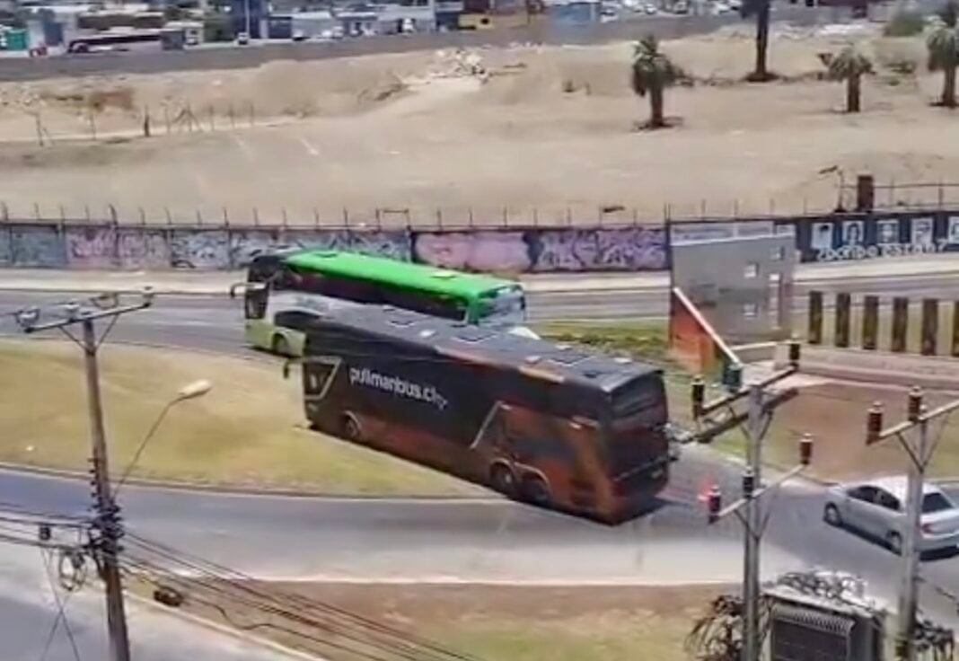 El registro, publicado en la red social X, muestra a un bus detenido por una falla mecánica en una rotonda de avenida Iquique, frente al Memorial de los Detenidos Desaparecidos y en las cercanías del Terminal de Buses de Antofagasta. Debido a la obstrucción de la vía, otro bus que circulaba por el sector optó por no buscar una ruta alternativa ni esperar la normalización del tránsito, y decidió avanzar directamente sobre las áreas verdes del lugar.