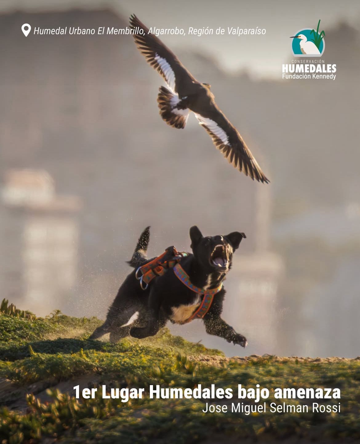 Humedal Urbano El Membrillo, Algarrobo, Valparaíso. Su imagen denuncia la presencia irresponsable de perros en zonas de nidificación, uno de los mayores peligros para crías de aves playeras como los pilpilenes y queltehues.
