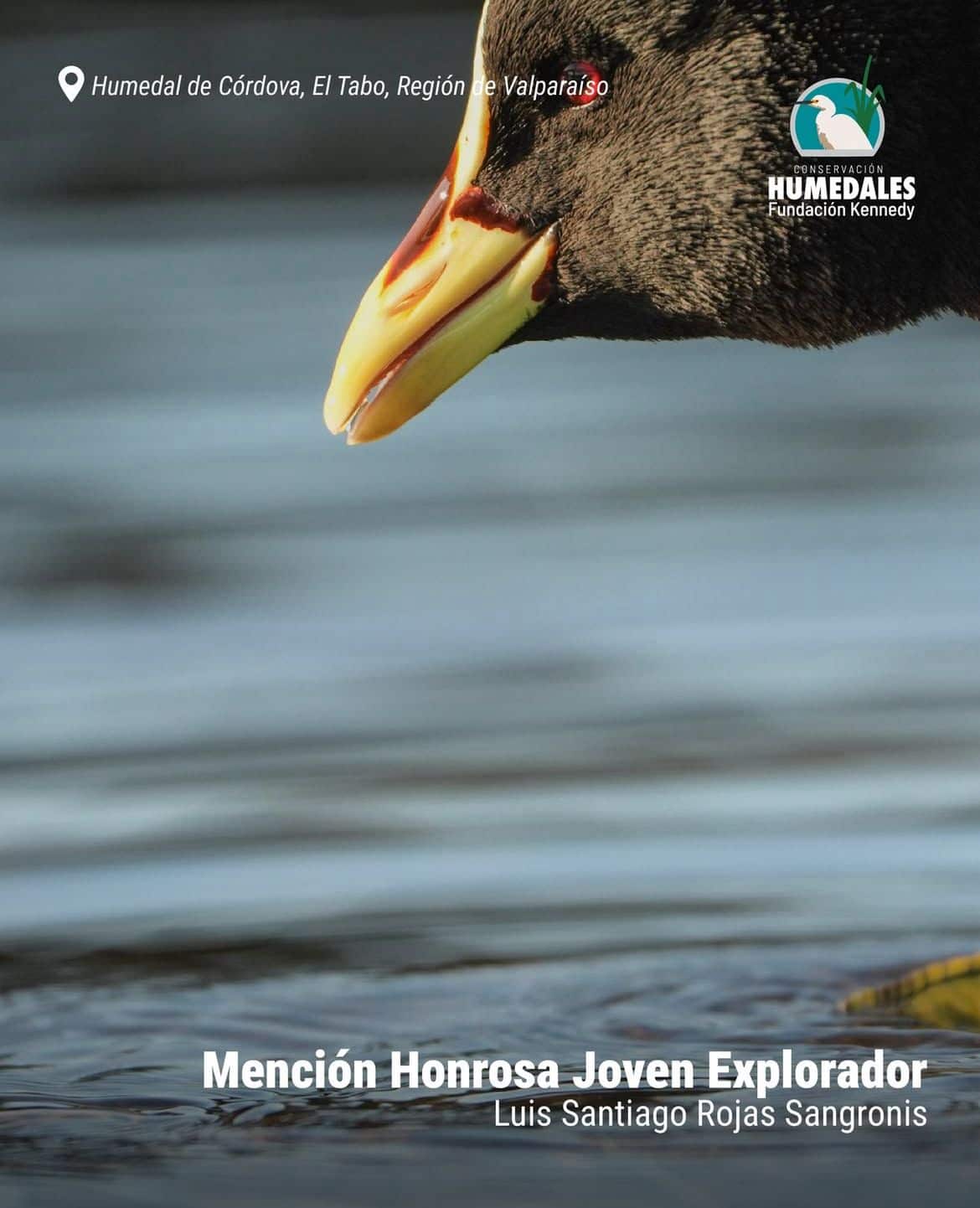 Humedal de Córdoba, El Tabo, Valparaíso. Retrató a una tagua con una expresión que conecta de inmediato con el espectador, una mirada que invita a las nuevas generaciones a acercarse a la naturaleza con empatía y asombro.