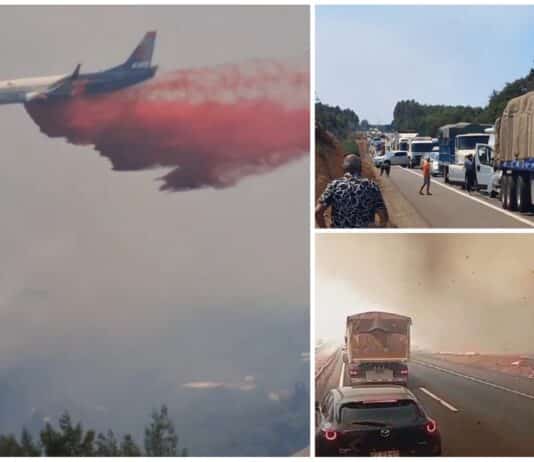 Alerta Roja y tránsito cortado en la Ruta 5 Sur: Impactantes videos evidencian la gravedad de los incendios en la región de La Araucanía