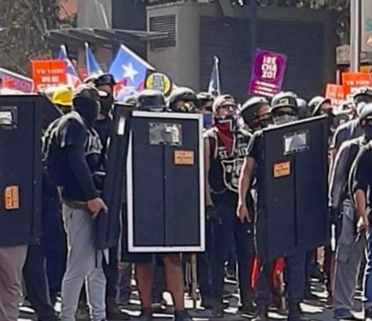 Escudos utilizados como armas por partidarios del “rechazo” fueron confeccionados en sede de la UDI