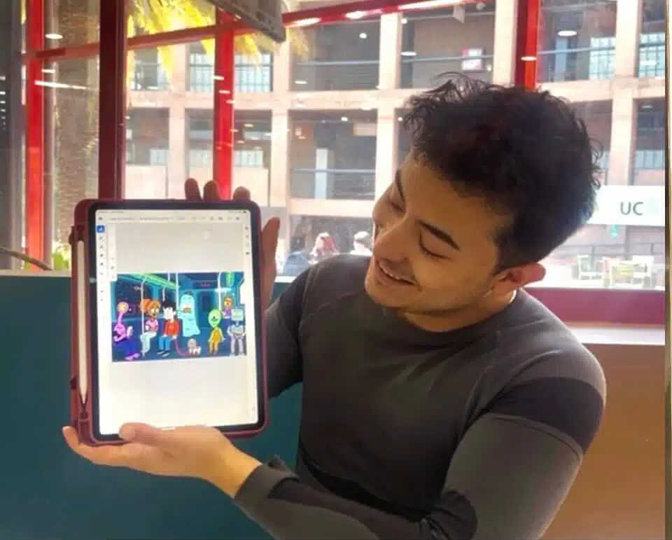 El profesional además señaló que “por lo general mis inspiraciones son experiencias del día a día, cosas cotidianas como jugar juegos con tus amigos, ir apretado en el metro, buscar pega, mi propuesta se basa mucho en chilenizar experiencias cotidianas”.