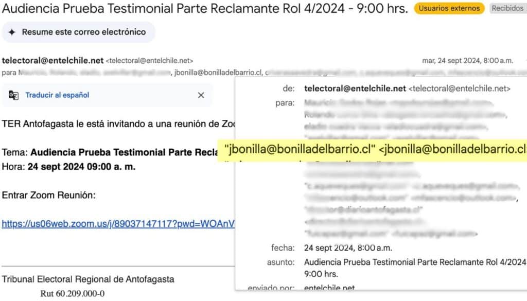 Si bien no está formalmente incluido en el equipo defensor de Velásquez, se observa una coordinación cercana, dado que su hijo utiliza el correo del estudio jurídico de su padre como contacto oficial ante el TER para notificaciones de audiencias, como la realizada el 24 de septiembre de 2024. Un gesto que podría interpretarse como una señal de colaboración operativa entre ambos profesionales, padre e hijo, en esta causa.