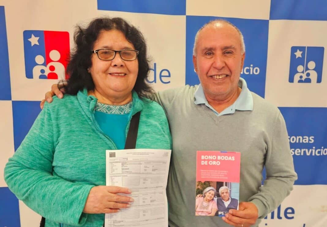 El Instituto de Previsión Social (IPS) hace un llamado a las más de 5 mil personas a nivel nacional, que tendrán derecho al Bono Bodas de Oro entre octubre y diciembre de este año 2025, al cumplir 50 años de matrimonio, a solicitar el beneficio por medio de videoatención, trámite que se puede hacer de forma rápida y simple en los sitios www.chileatiende.cl o www.ips.gob.cl, y lo deben solicitar ambos cónyuges de manera conjunta.
