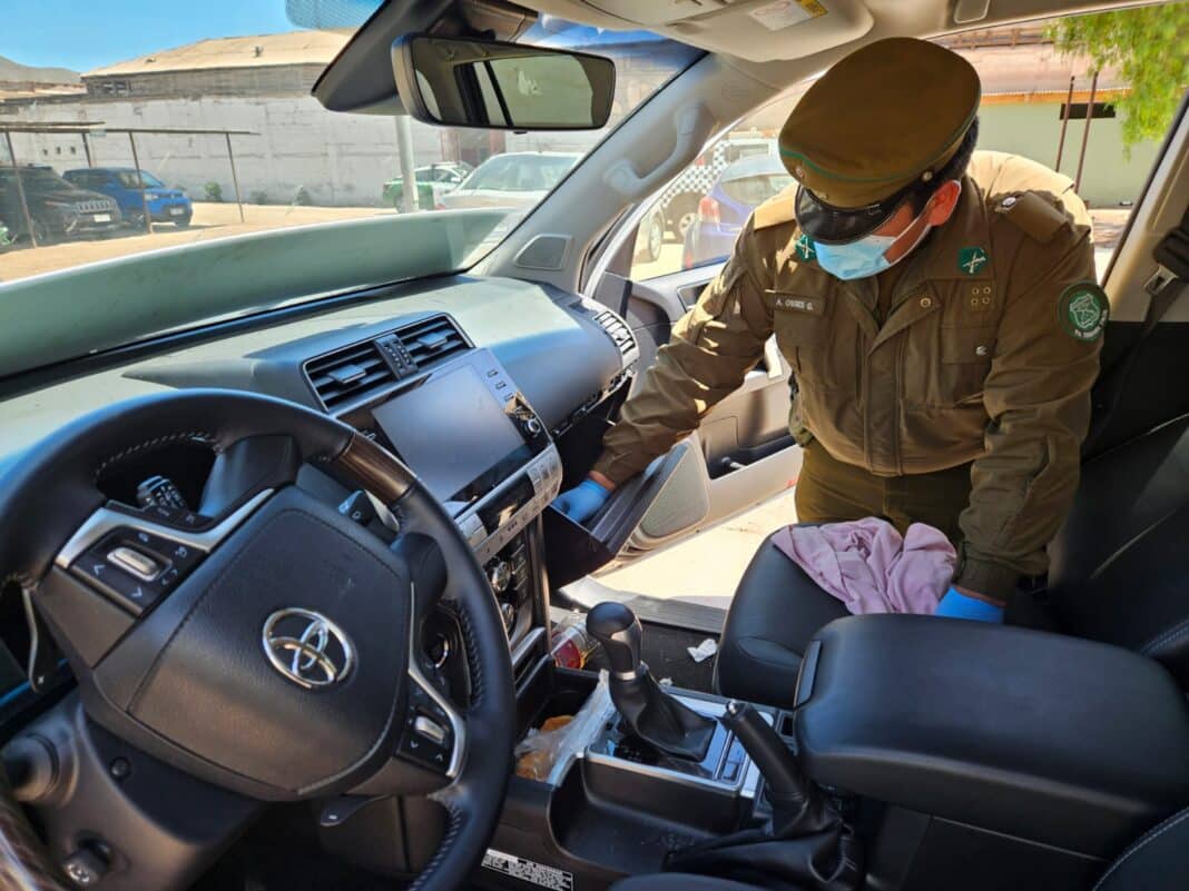 El procedimiento se origina cuando los funcionarios policiales, fiscalizan el vehículo a la altura del km 2 y advierten la incongruencia entre la patente y el número de chasís, que al ser verificado arroja que había sido robado el 23 de agosto de este año en la comuna de San Miguel. Ante esto, es detenida la conductora y acompañante.