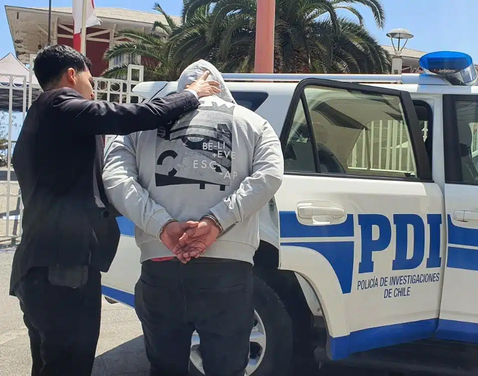 La Policía de Investigaciones (PDI) de Antofagasta logró la detención en flagrancia de un sujeto acusado de robo con violencia en el sector céntrico de la ciudad. El hecho ocurrió la tarde del 20 de abril, cuando la víctima fue abordada por un individuo que, mediante el uso de la fuerza, le sustrajo una cadena de oro avaluada en $200.000. Tras realizar la denuncia, la propia víctima reconoció al agresor en la vía pública, permitiendo que los detectives de la Brigada Investigadora de Robos (BIRO) iniciaran un rastreo que culminó con la captura del sospechoso en las inmediaciones de Playa Paraíso durante la noche.