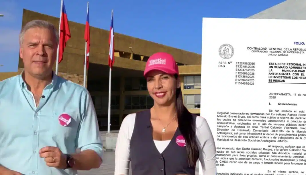 La Contraloría Regional de Antofagasta ordenó este 17 de noviembre la instrucción de un sumario administrativo en la Municipalidad de Antofagasta, con el fin de investigar una serie de denuncias relacionadas con el presunto uso de recursos públicos, funcionarios municipales y plataformas institucionales para favorecer la campaña a diputada de la entonces directora de Desarrollo Comunitario (DIDECO), Yantiel Calderón Valenzuela.