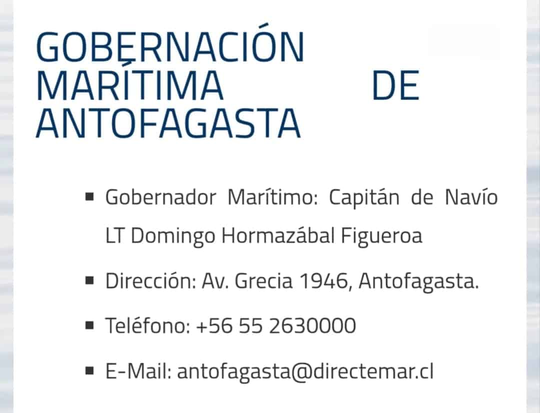 Cabe recordar que estos actos irresponsables se pueden y deben denunciar. En la región de Antofagasta, esto se puede realizar a través de los distintos canales correspondientes tanto a la Gobernación Marítima, como a la Capitanía de Puerto de las distintas comunas.
