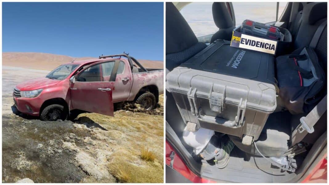 Un importante procedimiento desarrolló la Policía de Investigaciones en la ruta internacional 27CH, donde detectives de la Brigada de Investigación Criminal (BICRIM) Calama, del Departamento de Migraciones y Policía Internacional, y de la Brigada Investigadora de Robos Antofagasta (BIRO) recuperaron una camioneta con encargo por robo y equipos técnicos de alto valor, cuyo avalúo total supera los 105 millones de pesos.