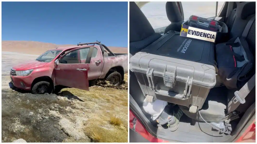 En esa zona, una de las camionetas quedó atrapada y su conductor escapó del lugar, abandonando el vehículo. Ante esto, personal de Migraciones y Policía Internacional Calama acudió para prestar apoyo operativo y verificar la situación, constatando que la camioneta mantenía encargo vigente por robo.