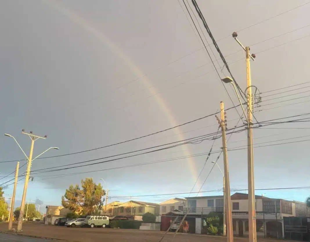 Sin embargo, tras pasar las lluvias fue posible apreciar un hermoso arcoíris adornando el cielo calameño.