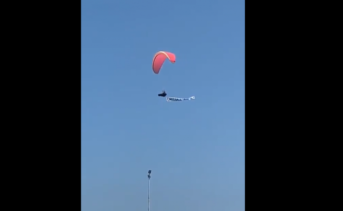 [VIDEO] Momento exacto en que un Parapentista aterriza en el Balneario de #Antofagasta con un lienzo que dice #ChileDespertó. Es recibido entre los aplausos de la gente 👏🏾 pic.twitter.com/7Bd1g6UrO7