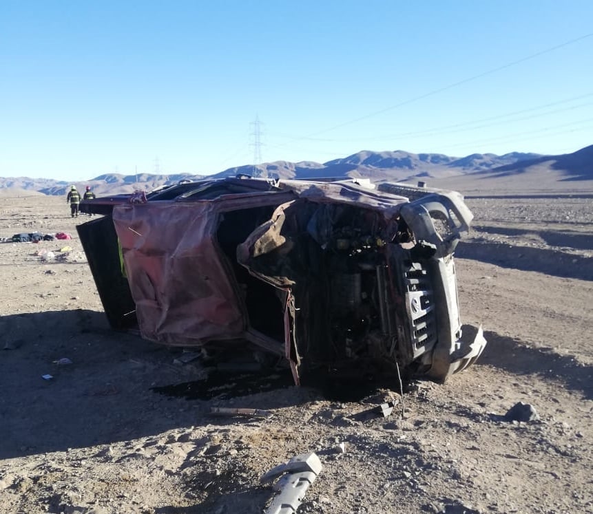 Se trata de una camioneta que viajaba con una familia desde Copiapó hacia Antofagasta, la cual por causas que son materia de investigación, desvió su trayectoria y volcó a un costado de la Ruta 5, a la altura del kilómetro 1.418, sector conocido como “Mano del Desierto”.