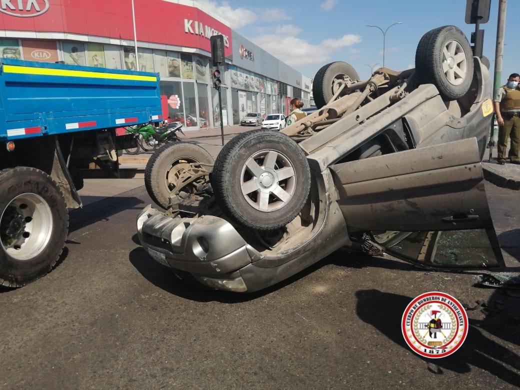 Cercano a las14:30 horas la Central de Alarmas del Cuerpo de Bomberos de Antofagasta procedió a despachar sus unidades BR-8 y BR-4 hasta el sector centro norte de la ciudad por información preliminar de volcamiento de vehículo menor.