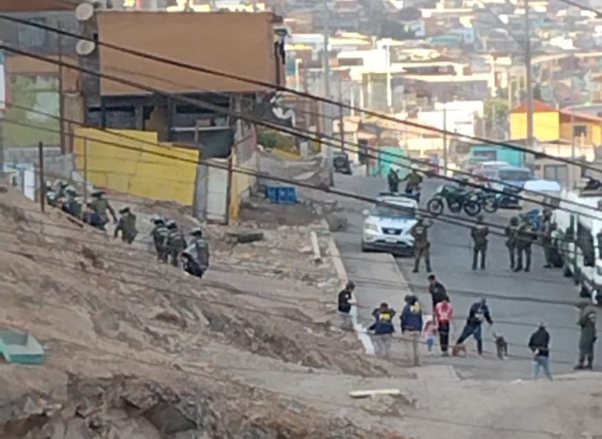 Personal de Carabineros y la Policía de Investigaciones realizan durante este jueves un operativo en el sector del Cerro el Ancla, con el fin de desalojar una toma incipiente en el sector.