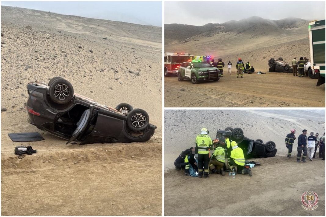 Cerca de las 18:45 horas de este domingo 5 de octubre, la Central de Alarmas de Bomberos de Antofagasta recibió una alerta por información preliminar de volcamiento de vehículo menor camino a Playa Escondida.