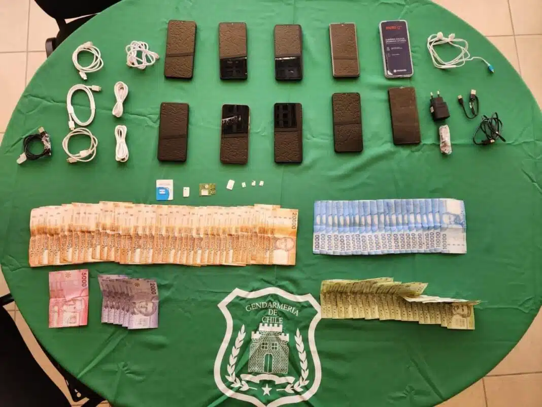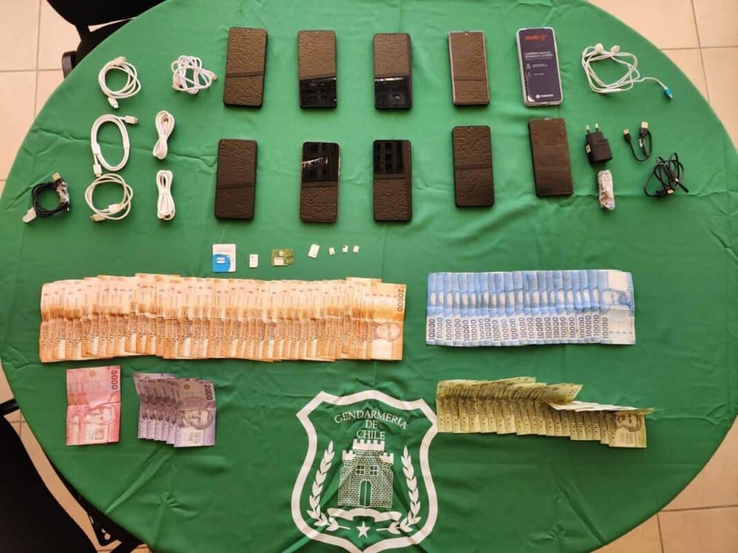 Una vez informado el hecho a las jefaturas el trabajador accedió a la revisión de su casillero, donde los funcionarios de Gendarmería encontraron además otros 10 teléfonos celulares, cargadores, manos libres y un millón ochenta y dos mil pesos en efectivo.