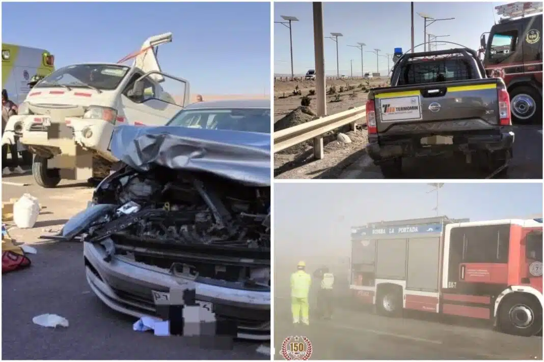 Pasadas las 16:30 horas de este miércoles 19 de noviembre, la Central de Alarmas de Bomberos de Antofagasta despachó a sus unidades BR-8, BX-5 y Q-1 hasta el kilómetro 1.396 de la Ruta 5, antes de llegar al peaje, tras reportarse una múltiple colisión vehicular.