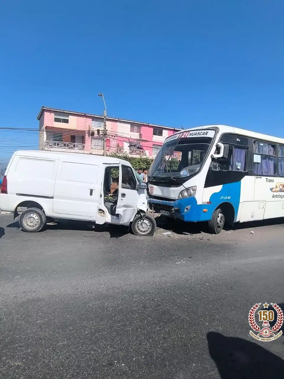 De acuerdo con información preliminar, se trató de una colisión entre un microbús del transporte público y un furgón, situación que motivó la activación de los protocolos de emergencia. La Central de Alarmas del Cuerpo de Bomberos de Antofagasta despachó hasta el lugar a las unidades BR-8, BX-5 y M-1.