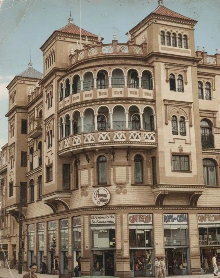 Los dos primeros pisos albergaron los Almacenes Giménez, una tienda dedicada a la importación y confección textil que rápidamente se transformó en un referente comercial de la ciudad. Los pisos superiores combinaron sastrería, juguetería, ventas al por mayor y, en lo más alto, la residencia familiar.