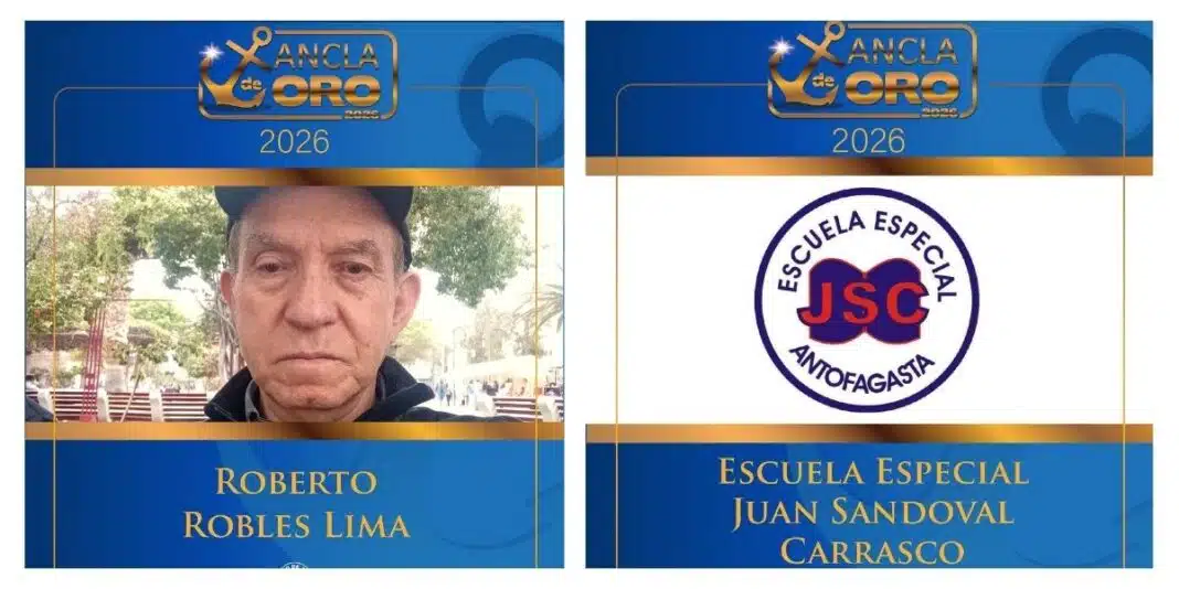 En el marco del 147° aniversario de Antofagasta, el Concejo Municipal, presidido por el alcalde Sacha Razmilic, acordó de manera unánime otorgar el Ancla de Oro a Roberto Robles Lima y, en la categoría personas jurídicas, a la Escuela Especial Juan Sandoval Carrasco E-77, destacando su aporte a la identidad cultural y al trabajo educativo inclusivo en la ciudad.