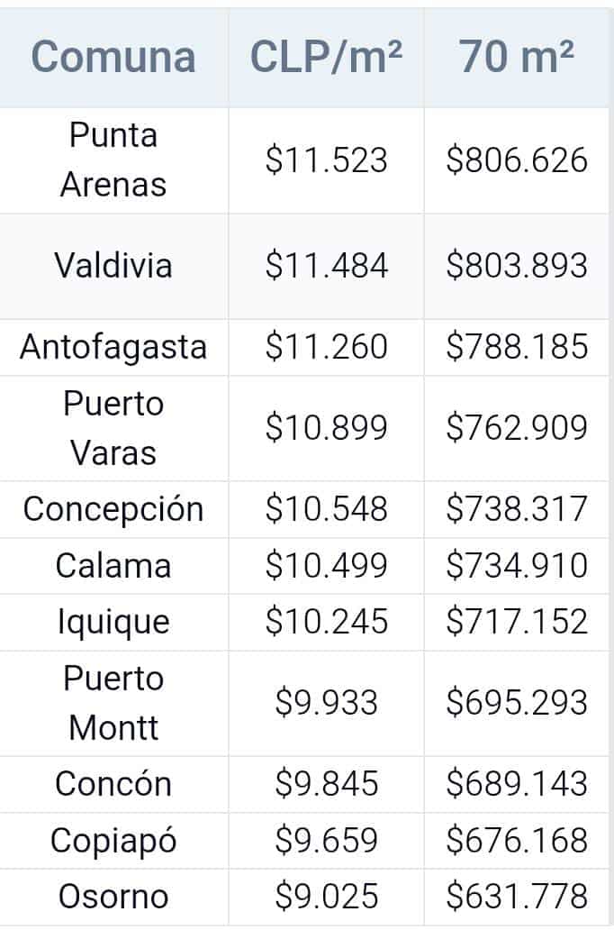 La estadística pone como la ciudad más cara para arrendar a Punta Arenas y Valdivia, la primera con un arriendo de $806.626 y la segunda con un precio mensual de $803.893.