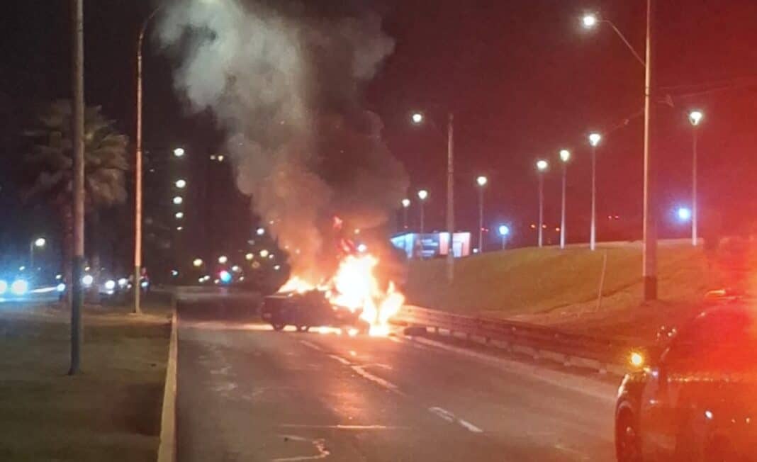 Equipos de emergencia trabajaron en el sector para extinguir las llamas y asegurar el área, mientras se investigan las circunstancias que originaron la colisión.