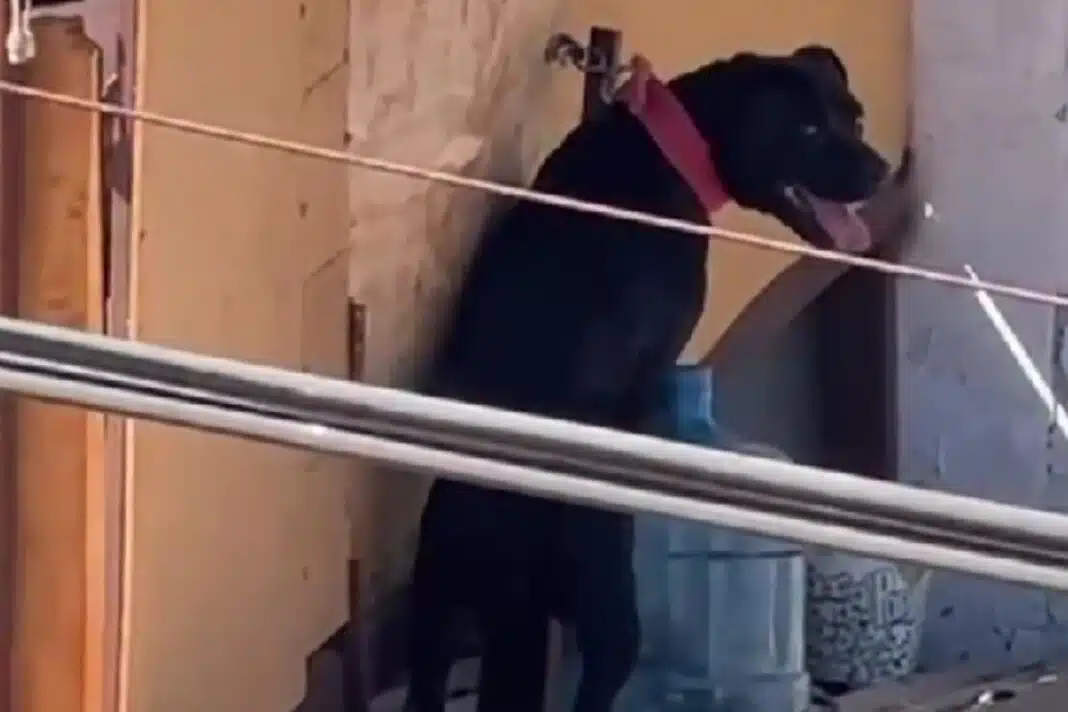 Un nuevo caso de maltrato animal fue registrado la tarde de este sábado en el sector norte de Antofagasta, en donde se ve a un perro colgando del collar que lo sostenía, el que estaba afirmado de un amarre puesto en el muro.