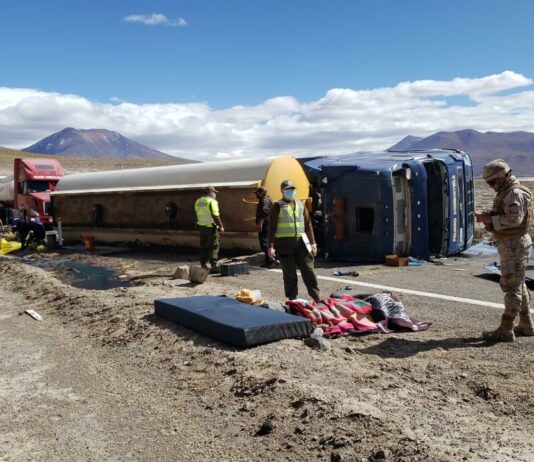 Volcamiento de camión en la región de Antofagasta mantiene cortada la Ruta 21CH a la altura del Km 170