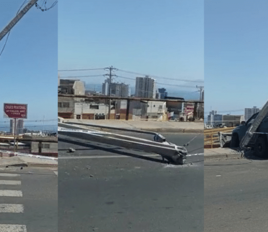 Video| Vehículo chocó y derribó dos postes de alumbrado público en Antofagasta