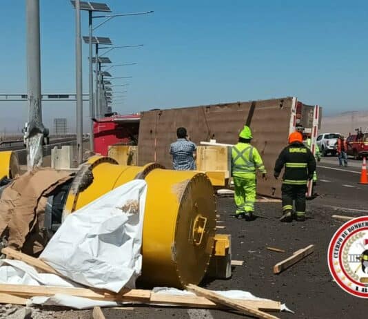 Camión volcó en rotonda que une rutas 5 Norte y B400 de Antofagasta