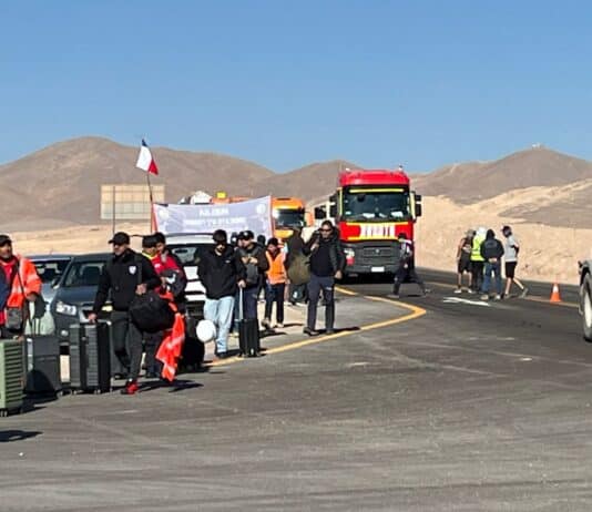 Antofagasta: Ruta de la minería continúa bloqueada por huelga en Finning y trabajadores cruzan a pie