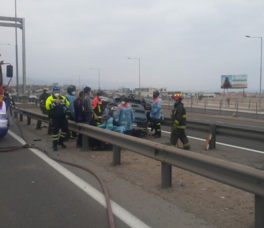 Choque de vehículo con barrera de contención y posterior volcamiento dejó tres lesionados en Antofagasta