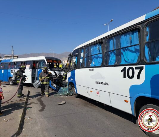 Cinco personas lesionadas dejó colisión entre dos microbuses en el sector norte de Antofagasta