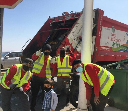 ¡Digno de imitar!: Trabajadores de camión recolector de basura en Antofagasta entregan regalo navideño a pequeño amigo que salía a saludarlos