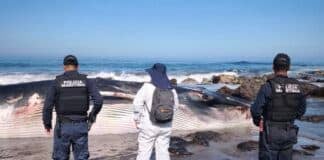 Varamiento de ballena activa operativo de la Autoridad Marítima de Antofagasta y Sernapesca