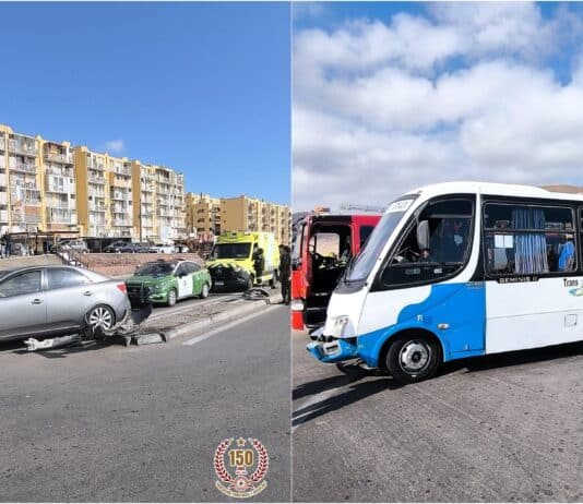 Accidente entre auto y microbús de la línea 129 deja un lesionado en Antofagasta