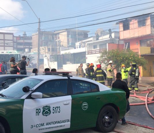 Gran incendio registrado al sector sur de Antofagasta: Dos domicilios involucrados y una persona con quemaduras