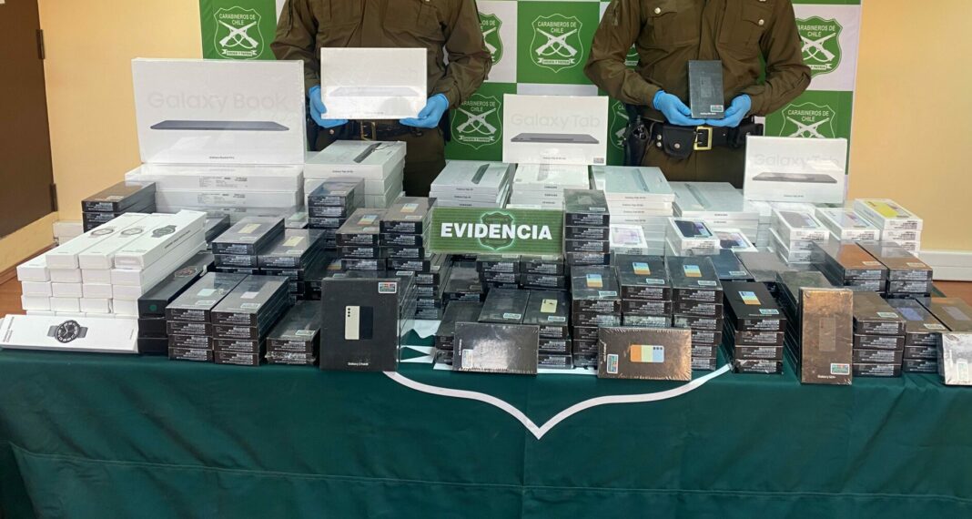 La detención de los sujetos y recuperación de las especies, dio como resultado la incautación de 57 tablet, 6 computadores personales, modelos Book4 PRO; 27 relojes inteligentes y 225 teléfonos celulares.