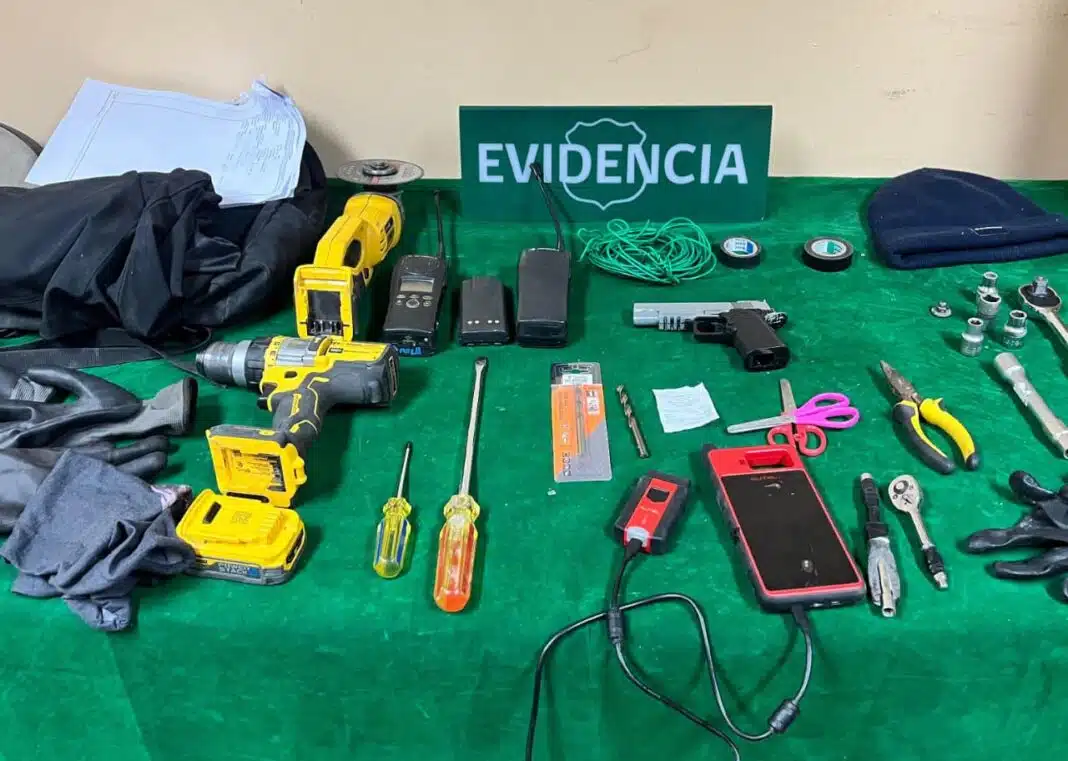 En el registro del vehículo, los funcionarios incautaron diversos elementos utilizados para el robo de automóviles, incluyendo un escáner automotriz, una computadora de vehículo, radios portátiles, herramientas y un arma a fogueo.