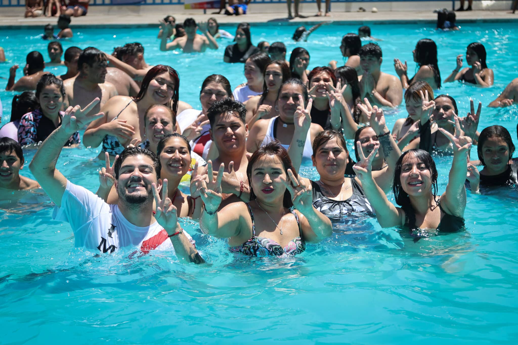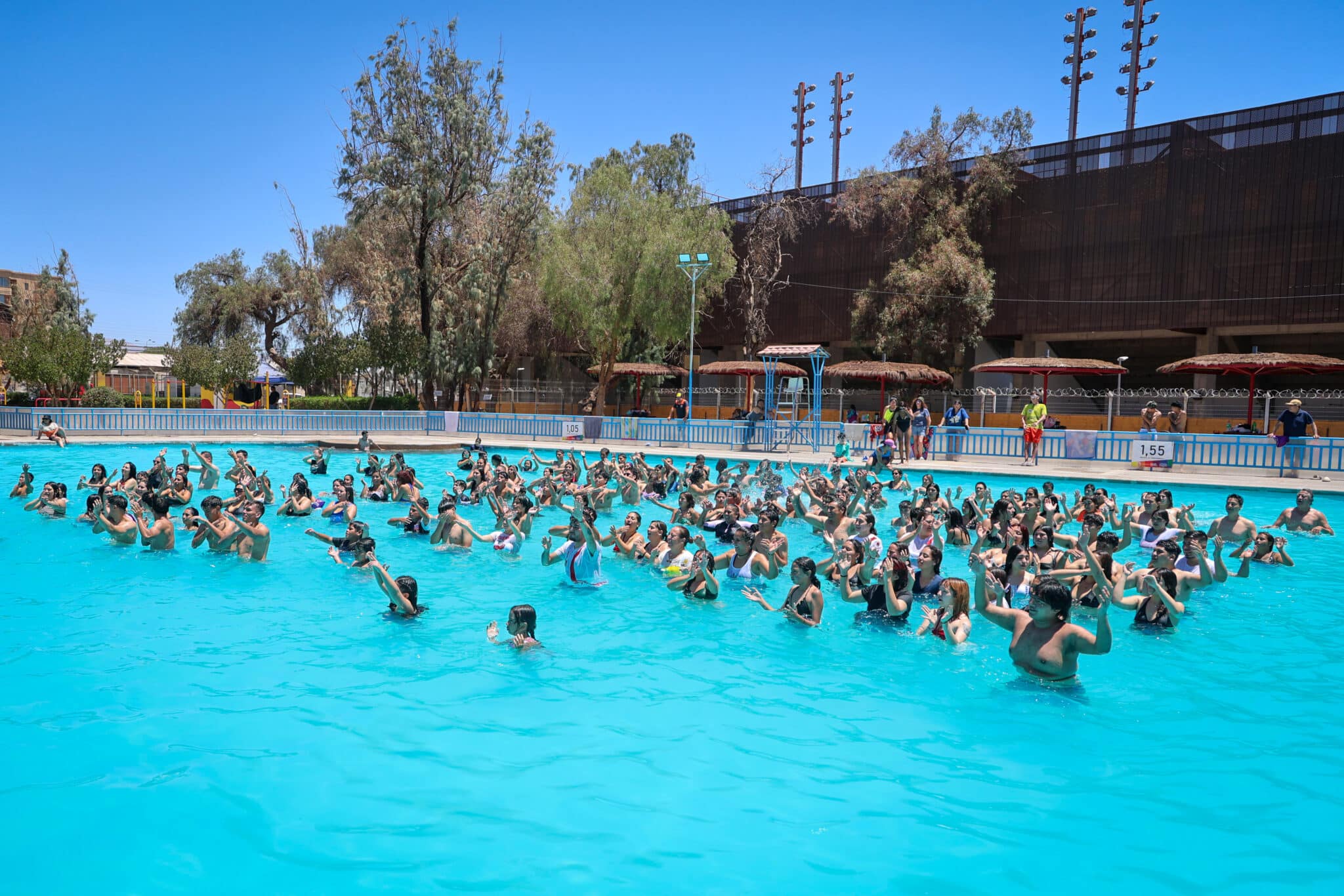 La jornada contó con animación en vivo y un baile entretenido en el agua, lo que potenció el ejercicio, la vida sana y las medidas de seguridad para utilizar la piscina y toboganes.