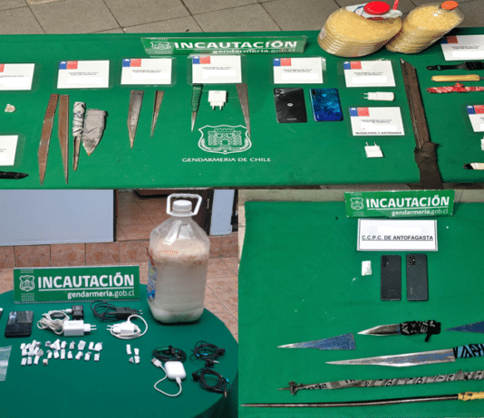 Operativos preventivos en penales de la región de Antofagasta incautan más de 100 armas blancas y celulares
