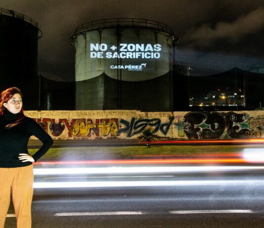 Con proyecciones lumínicas y carnaval: Catalina Pérez sorprende a transeúntes en última semana de campaña