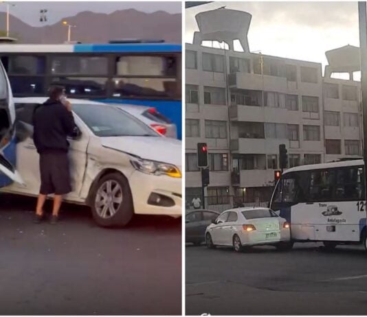 VIDEO | Colisión entre microbús y vehículo menor en el sector sur de Antofagasta dejó dos personas lesionadas