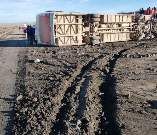 Bus volcó en ruta internacional de la región de Antofagasta: Un fallecido y 10 personas lesionadas
