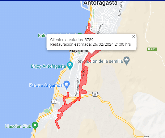Más de 3 mil clientes afectados: Masivo corte de luz se registra en el sector sur de Antofagasta