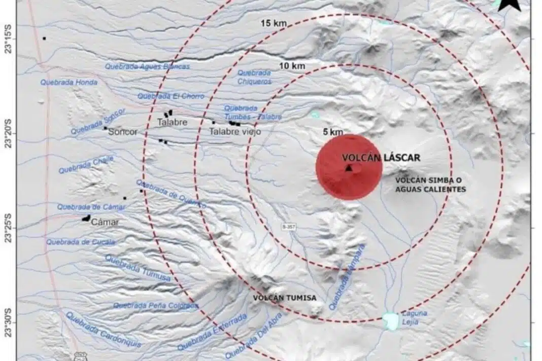 Debido a un incremento significativo en la actividad interna y superficial del volcán Láscar, el Servicio Nacional de Prevención y Respuesta ante Desastres (SENAPRED) decretó un perímetro de seguridad de 5 kilómetros alrededor del cráter activo. Esta medida, establecida en la comuna de San Pedro de Atacama, prohíbe el tránsito de personas y vehículos, restringiendo actividades de turismo y pastoreo para proteger a la comunidad ante la inestabilidad del macizo.